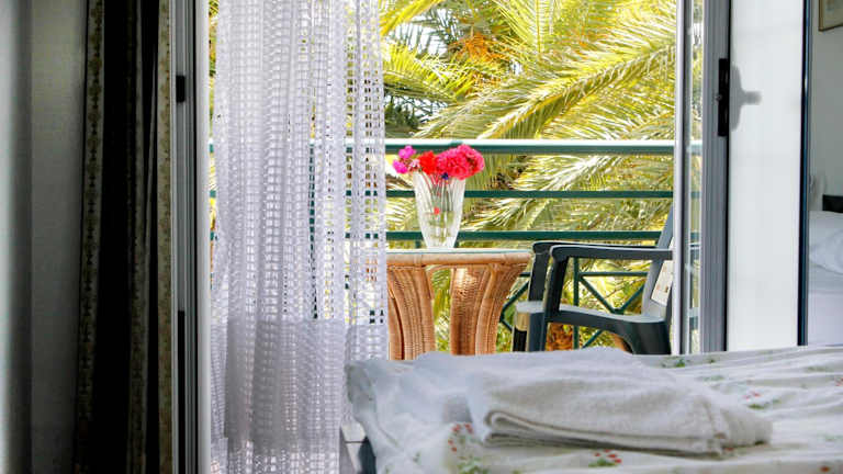 Die klimatisierten Zimmer sind mit Fliesenböden ausgestattet und verfügen über ein eigenes Badezimmer. Zu den weiteren Annehmlichkeiten zählen Flachbild-TV, Kleiderschrank und eine ausgestattete Küche mit Kühlschrank, Herdplatte, Toaster sowie Kaffee- und Wasserkocher. Alle Zimmer besitzen einen Balkon mit Meerblick. Handtücher werden alle 3 Tage und Bettwäsche alle 5 Tage gewechselt.
