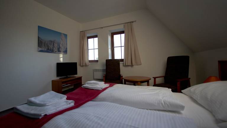 Die Pension Kramářova chata verfügt über eine Terrasse, einen kostenlosen Privatparkplatz, ein Restaurant sowie Massageservices. Die Unterkunft bietet einen schönen Blick auf die Berge und einen Kinderspielplatz. Gratis Wifi ist im ganzen Haus verfügbar.