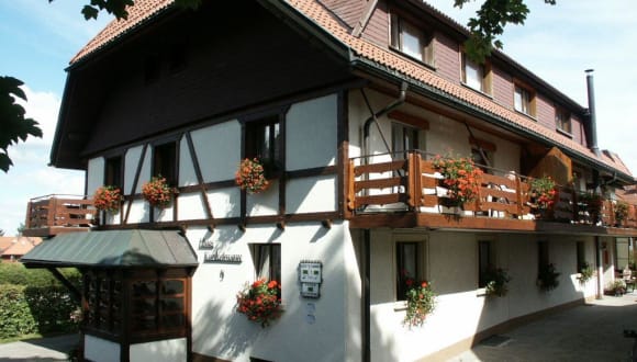 Die Pension Kunkelmann bietet Ihnen aufgrund der besonders ruhigen und sonnigen Lage alle Voraussetzungen für Entspannung und Erholung. Es stehen Ihnen 2-3 Zimmer- Ferienwohnungen / Appartements und Gästezimmer mit Dusche/WC/TV teilweise mit Südterrasse oder Balkon zur Verfügung. Unsere 2-3 Zimmer-Ferienwohnungen sind überwiegend neu renoviert und sehr modern und gemütlich eingerichtet, unter anderem mit Sat-TV und Wandtresor. Parkmöglichkeiten direkt am Haus. Freies WLAN. Gegen Gebühr Benutzung der Waschmaschine. Zum Gäste- und Getränkekühlschrank, Sat-TV, Lesematerial und Spiele zur Unterhaltung stehen auch in unserem geräumigen Aufenthaltsraum für Sie bereit. Auch haben wir eine Liegewiese mit gemütlicher Sitzecke und einem Grillplatz. Ihre Sportgeräte können Sie gerne in einem abgeschlossenen Vorraum oder einer Garage am Haus unterbringen.