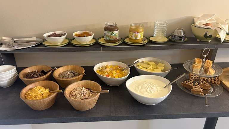In der Pension l'Etage wird ein Frühstück in Buffetform angeboten, welches kontinentale und italienische Komponenten umfasst. Gäste können sich auf eine Auswahl an Speisen freuen, die ihnen den Start in den Tag erleichtert.