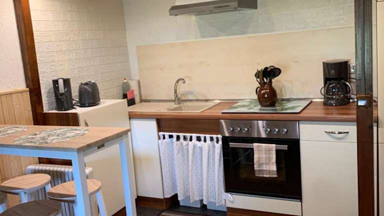 Die Pension verfügt über zwei Schlafzimmer und ein Badezimmer. Zur Ausstattung gehören Bettwäsche und Handtücher, ein Flachbild-TV mit Satellitenkanälen, ein Essbereich sowie eine voll ausgestattete Küche. Eine Terrasse mit Gartenblick lädt zum Entspannen ein.