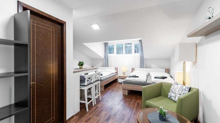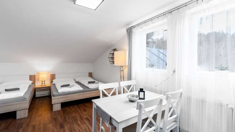 Die Zimmer in der Pension Lesná sind mit einem Kleiderschrank ausgestattet. Jedes Zimmer verfügt über ein eigenes Badezimmer mit einer Dusche. Einige Zimmer sind zudem mit einer Küche inklusive Kühlschrank eingerichtet. Für die Bequemlichkeit der Gäste sind Bettwäsche und Handtücher in jedem Zimmer bereitgestellt.