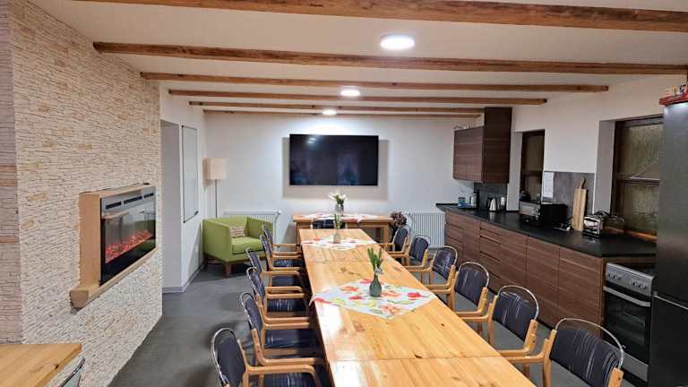 Eine Gemeinschaftsküche steht den Gästen in der Pension Lesná zur Verfügung, die eine einfache Selbstversorgung ermöglicht. Darüber hinaus sind keine Informationen über spezifische Verpflegungsmöglichkeiten vorhanden.