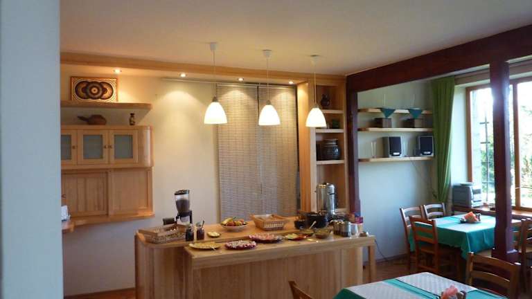Das Hotel bietet traditionelle polnische Gerichte, darunter ein biologisches Frühstück. Ein Kühlschrank und ein Wasserkocher stehen im Esszimmer zur Verfügung. Essenslieferungen in die Unterkunft sind ebenfalls möglich.