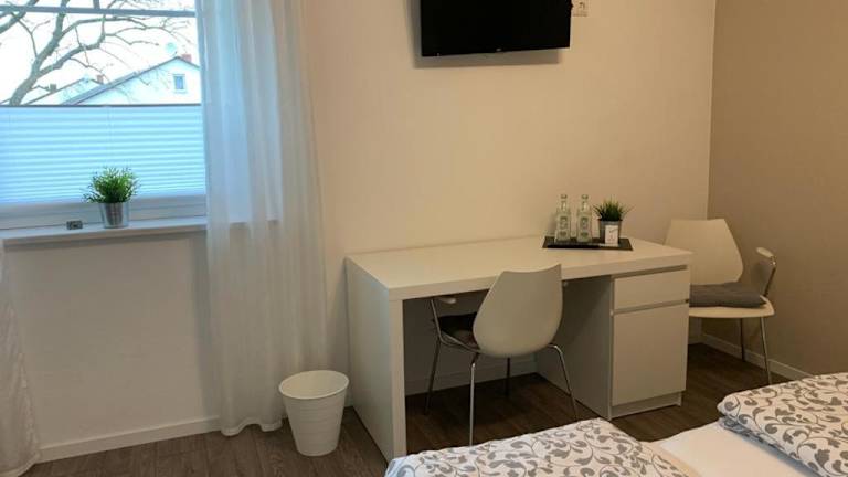 Die Zimmer in der Pension M sind mit einem Schreibtisch, einem Flachbild-TV und einem eigenen Badezimmer ausgestattet. Zudem stehen Bettwäsche und Handtücher bereit, und es gibt einen Kleiderschrank in den Wohneinheiten.