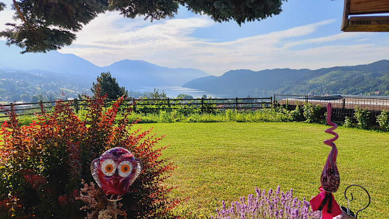 Unsere Frühstückspension liegt auf einer Anhöhe mit Panoramablick auf den Ort Seeboden, die grünen Berge und den schönen Millstätter See. 15 Gehminuten in den Ort Seeboden, weitere 5 Minuten zum See. 2,5 km entfernt ist der nächste Golfplatz.