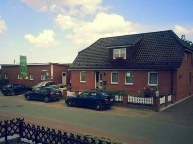 In der Pension befinden sich 7 Doppelzimmer, 1 Einzelzimmer und 2 Dreibettzimmer.In der Saison kostet das DZ + Frühstück 67 Euro, EZ + Frühstück 46 Euro und das 3 Bett Zimmer + Frühstück 77 Euro.Zusätzlich gibt es noch eine Ferienwohnungen direkt neben der Pension. Diese kosten pro Nacht 65 Euro. Ein leckeres und vielfältiges Frühstücksbuffet kann für 7 Euro pro Person dazu gebucht werden. In der die Ferienwohnung ist eine Aufbettung möglich TV, Bad mit Dusche und eine Wohnküche, sowie jeweils 2 Schlafzimmer. Am Abend besteht die Möglichkeit, zwischen 18 und 20 Uhr zu Abend zu essen. Es ist ein Koch im Haus, der für das leibliche Wohl der Hausgäste sorgt. An schönen Tagen kann man den großen und gemütlichen Garten nutzen oder sich in den Wintergarten setzen um die Seele baumeln zu lassen und das ein oder andere Getränk zu sich zu nehmen. Draußen gibt es eine Grillecke, die Sie gerne nutzen können. Es gibt eine Tischtennisplatte sowie für drinnen und draußen wie "Mensch Ärgere dich nicht" oder Federball oder sonstiges. Fahrräder zum Verleih können nach Absprache organisiert werden. ( auch E-Baiks), Wir bieten auch unter anderem verschiedene Massagen an, welche ein oder zwei Tage vorher gebucht werden können. Hamberge ist ein ruhiger und mitten in der Natur gelegener Ort, der 15 km von der Ostsee entfernt ist. Am höchsten Punkt in Nordwest-Mecklenburg haben Sie einen super Ausblick auf die Umgebung und einen perfekten Ausgangspunkt in viele Städte wie Grevesmühlen (5min), Wismar (20min), Boltenhagen (20 min), Wohlenberg (10 min), Schwerin (30 min), Lübeck (30 min), Rostock (45 min). Eine kostenlose WLAN Nutzung steht für Sie bereit. "Ferienwohnung am Wiesengrund" (Wotenitz) Eine zweite Ferienwohnung in Wotenitz gehört auch noch zu unserer Pension liegt aber 8km entfernt von Hamberge am anderen Ende der Stadt. In ruhiger und schöner grünen Lage liegt unsere Ferienwohnung in Wotenitz bei Grevesmühlen. Die Ausstattung besteht aus komplett eingerichteter Küche, Bad mit WC und Dusche, großes Wohnzimmer mit TV, Couch kann ausgezogen werden, 1Schlafzimmer mit Ehebett + Aufbettung, 1Schlafzimmer, Grillterasse sowie Grünfläche im Garten. Ausstattung für Kinder: Fußballtor und Basketball Korb. Unser Hauskater Shorty bewacht rund um die Uhr das Grundstück. Der Preis pro Nacht beträgt 65 Euro. *hier ist Urlaub, hier kommen Sie zur Ruhe* Über einen Besuch würden wir uns sehr freuen Ihre Familie Retzlaff