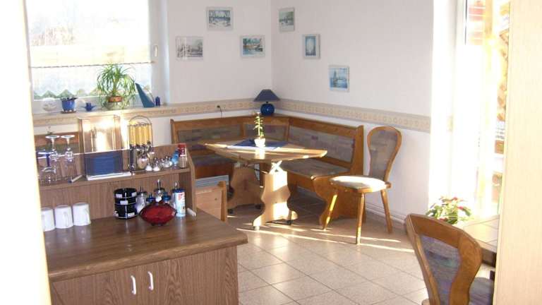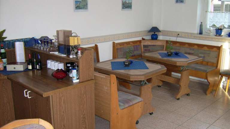 Jeden Morgen wird in der Pension Regenbogen ein Frühstück serviert. Die Unterkunft bietet auch eine Gemeinschaftslounge, die für kleine Snacks und die Zubereitung von einfachen Mahlzeiten genutzt werden kann.