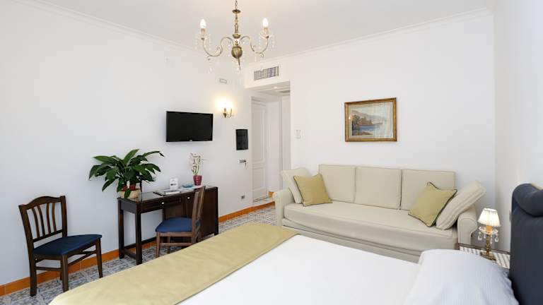 Die Zimmer sind geschmackvoll eingerichtet und zeigen ihren mediterranen Charakter durch wertvolle Details und handverzierte Vietri-Keramiken und -Kacheln.