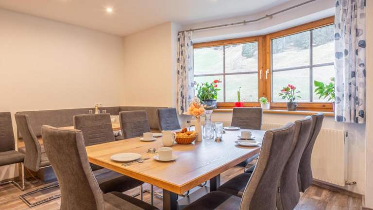 Die Ferienwohnung besteht aus 5 Schlafzimmern, einem Wohnzimmer und einer voll ausgestatteten Küche mit Kühlschrank und Kaffeemaschine. Es gibt 5 Badezimmer mit Dusche. Handtücher und Bettwäsche werden bereitgestellt, und ein Abstellraum für Skier ist vorhanden.
