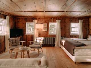 Fünf Zimmer, jedes davon ein Ausdruck der lokalen Tradition, die sich in der Bauweise und den Materialien der Interiors widerspiegelt, mit Bad ensuite (Dusche oder Badewanne) und allen modernen Annehmlichkeiten ausgestattet, einschließlich kostenfreiem WLAN. Im historischen Zentrum des Dorfes auf dem etwas erhöhten Plateau der Kirchenareals gelegen, sind die Blicke auf die Alte und Neue Kirche, das Alte Tannberggericht und den historischen Messmer-Stall sowie in die schneebedeckten Berge und auf den Ortskern von Lech einzigartig.