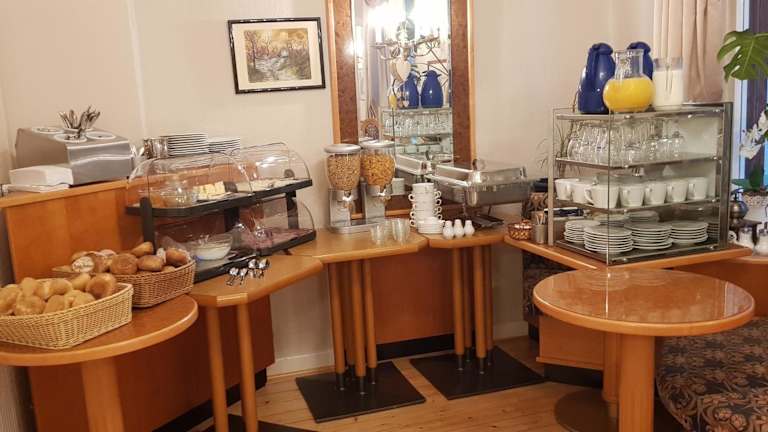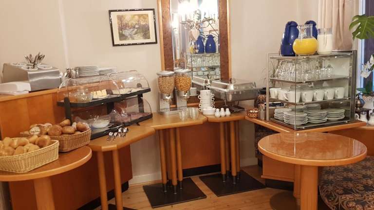 Ein reichhaltiges Frühstück wird den Gästen in Form eines Buffets, à la carte oder kontinentales Frühstück angeboten. Die Pension verfügt über eine Café-Konditorei, die Möglichkeiten zur Verpflegung bietet.