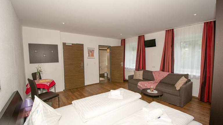 Jedes Zimmer in der Pension ist ausgestattet mit einem Kleiderschrank, einem Flachbild-TV und einem eigenen Badezimmer. Bettwäsche und Handtücher sind ebenfalls vorhanden. Bestimmte Zimmer verfügen über eine Küchenzeile mit Kühlschrank, Geschirrspüler und Ofen. Die Pension bietet komfortable und heimelige Unterkünfte für ihre Gäste.