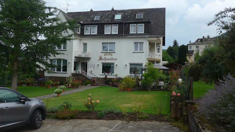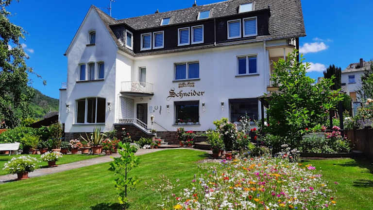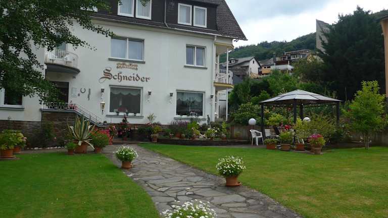 Die Pension Schneider befindet sich in ruhiger Lage an der schönen Mosel, nur 1,5 km vom Stadtzentrum von Cochem entfernt. Die Umgebung lädt zu entspannenden Spaziergängen und Velotouren am Wasser ein. Ein Supermarkt ist nur 2 Minuten zu Fuss entfernt, während der Bahnhof Cochem in einer Entfernung von 2,3 km liegt.