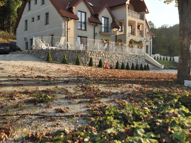 Das Solej Siedlisko Rezydencja ist ein klassisch eingerichtetes Hotel, das seinen Gästen eine gemütliche und heimelige Atmosphäre bietet. Die Unterkunft umfasst ein gemeinsames Wohnzimmer im Art-déco-Stil sowie diverse Annehmlichkeiten wie Sauna und Massageangebote.