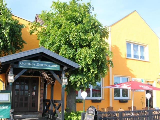 "Der Spreewaldhof Vetschau ist eine kleine familienfreundliche Pension mit 6 Zimmern und einer Ferienwohnung im Spreewald. Hier wird das Gastgeber sein noch groß geschrieben. Im großen Garten steht den Gästen eine schöne Grillecke zur Verfügung und auch die Kinder können sich auf dem Spielplatz austoben. Viele Bereiche im Spreewaldhof Vetschau wurden 2022 frisch renoviert, darunter auch der Restaurantbereich. Das Restaurant ist ausschließlich Montag und Freitag geöffnet während der Saison. Direkt an einem der schönsten Fahrradwege im Spreewald gelegen und nur wenige Kilometer von Burg/ Spreewald, Lehde, Leipe und auch Lübbenau entfernt."