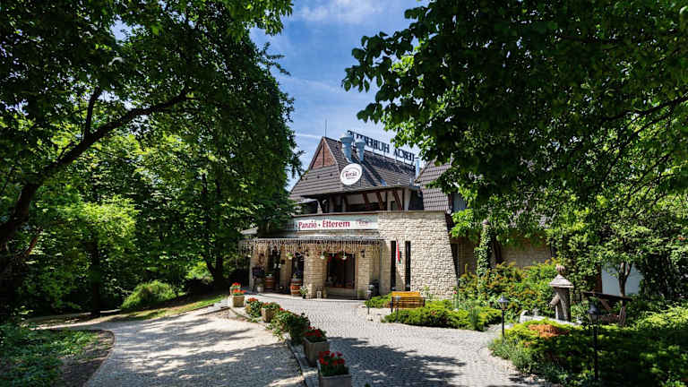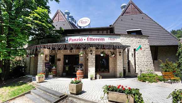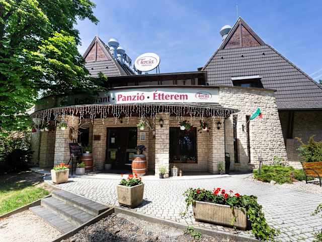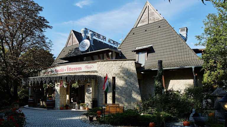 Das Restaurant der Pension serviert ungarische Spezialitäten. Ein kinderfreundliches Buffet und Speisen für spezielle Ernährungsbedürfnisse sind auf Anfrage erhältlich. Zudem gibt es ein Café vor Ort, welches Getränke und kleine Snacks anbietet. An bestimmten Abenden werden Motto-Dinner veranstaltet (gegen Aufpreis).