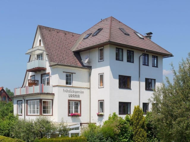 Gepflegte Frühstückspension mit familiärer Atmosphäre. Kostenlose Parkplätze, Liegewiese, Kinderspielecke, große Bibliothek, Kinderermäßigung im Elternzimmer
