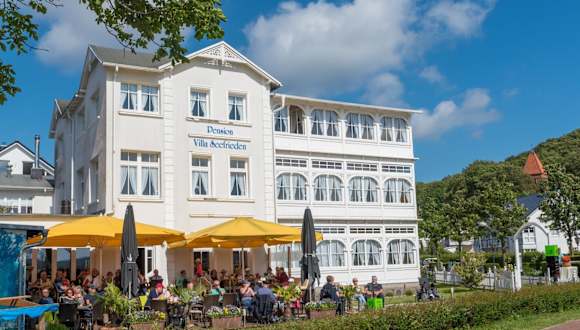 Die Pension Villa Seefrieden liegt 500 m von der Ostsee entfernt, in der Nähe der Haltestelle Ostseebad Binz, die mit dem Dampfzug Rasender Roland erreichbar ist. Die Autobahn A20 befindet sich 70 km entfernt und führt ins 140 km entfernte Rostock.