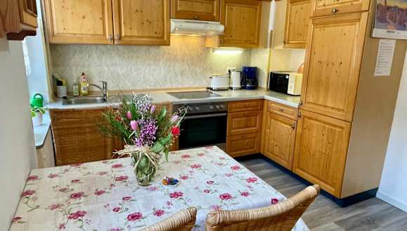 Die Ferienwohnung verfügt über 3 Schlafzimmer und 1 Badezimmer. Zur Ausstattung gehören Bettwäsche, Handtücher, ein Flachbild-TV mit Satellitenkanälen sowie ein Essbereich. Eine voll ausgestattete Küche und ein Balkon mit Gartenblick sind ebenfalls vorhanden.
