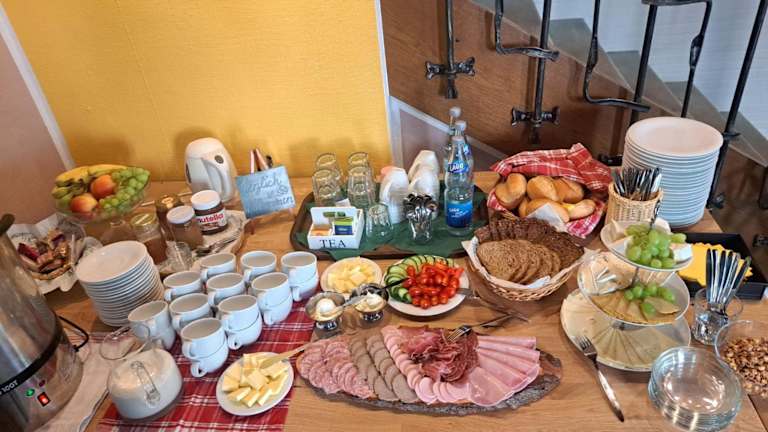 In der Pension wird ein Frühstück in Buffetform, à la carte oder als kontinentales Frühstück angeboten, wodurch die Gäste eine Vielzahl von Frühstücksoptionen zur Verfügung haben.