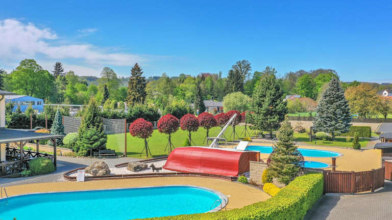 Das Hotel Za Vodou liegt ruhig, etwa 1,5 km vom Zentrum von Dvůr Králové entfernt. In der Nähe befinden sich mehrere markierte Radwege, und ein lokaler Bus hält direkt vor dem Hotel. Der Busbahnhof von Dvůr Králové ist nur 1 km entfernt. Attraktionen wie der Těšnov-Staudamm sind 6 km und das barocke Schloss Kuks 8 km entfernt. Der See Rozkos liegt 22 km vom Hotel entfernt.