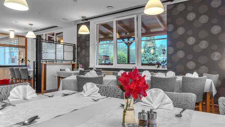 Im modernen Restaurant des Hotels Za Vodou können Gäste internationale Köstlichkeiten geniessen. Zudem stehen auf Anfrage Speisen für spezielle Ernährungsbedürfnisse zur Verfügung. Frühstücks-Behälter zum Mitnehmen werden angeboten, und die Möglichkeit, Lunchpakete zu erhalten, ist ebenfalls gegeben.
