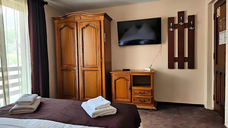Die Unterkunft Pensiunea Andrei Moieciu befindet sich in Moieciu de Jos, nur 2,7 km von Schloss Bran entfernt. Die nähere Umgebung bietet eine malerische Natur, die ideal für Wanderungen und Velofahren geeignet ist.
