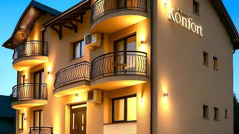 Die Pensiunea Konfort ist eine allergikerfreundliche Unterkunft, die Übernachtungsmöglichkeiten in einer ruhigen und einladenden Atmosphäre bietet. Zur Ausstattung gehören kostenloses Wifi, eine Terrasse, eine Bar und ein Kinderspielplatz. Es besteht die Möglichkeit, verschiedene Freizeitaktivitäten in der näheren Umgebung zu unternehmen, wie beispielsweise Velofahren.