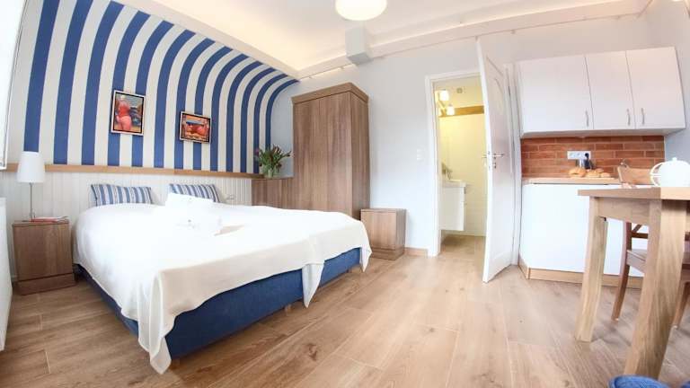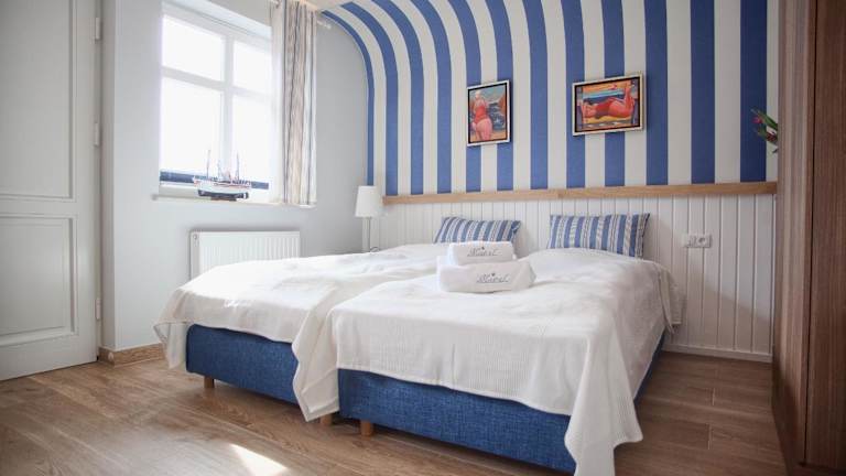 Das Pensjon Mistral hat helle Zimmer im maritimen Stil, die geschmackvoll in blau-weissen Farbtönen dekoriert sind. Kostenfreies Wifi ist in allen Bereichen verfügbar. Die Privatparkplätze an der Unterkunft sind ebenfalls kostenlos. Die Unterkunft hat keinen Empfang. Die Schlüssel werden im Dom Wakacyjny Mistral abgeholt.