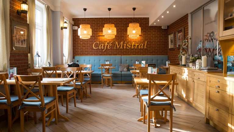 Ein Frühstücksbuffet wird angeboten. Das Café an der Unterkunft lädt zur Entspannung ein. Alle Zimmer im Mistral sind mit einer Küchenzeile ausgestattet, die Kühlschrank, Herd und Küchenutensilien beinhaltet.