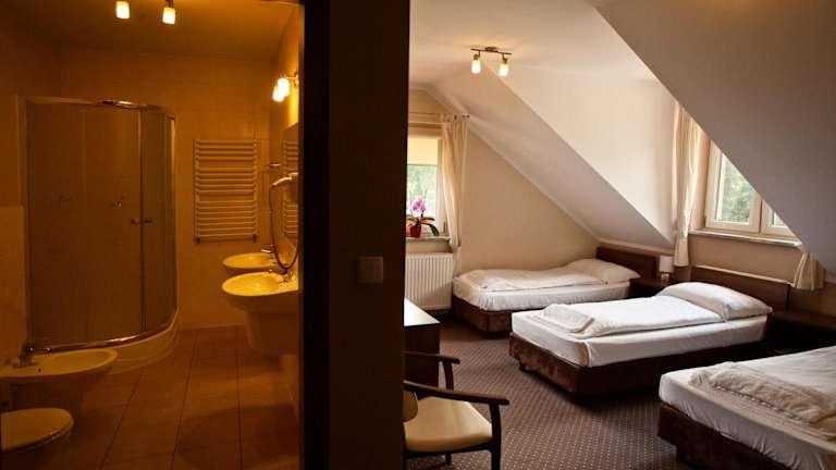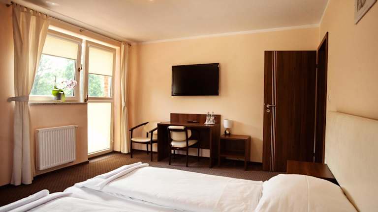 Das Pensjonat Bartosz bietet helle und geräumige Zimmer, die in warmen Farben eingerichtet sind und mit Teppichboden, Flachbild-Sat-TV sowie Kleiderschrank und Schreibtisch ausgestattet sind. Es wird kostenfreies WLAN und bewachte Parkiermöglichkeiten angeboten.