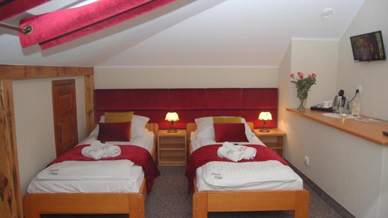 Die Zimmer der Unterkunft Pensjonat Dworek Polski bieten einen Sitzbereich mit einem Flachbild-TV sowie ein eigenes Badezimmer mit kostenlosen Pflegeprodukten, einem Haartrockner und einer Dusche. Die Zimmer sind zudem mit einem Kühlschrank und einem Wasserkocher ausgestattet.