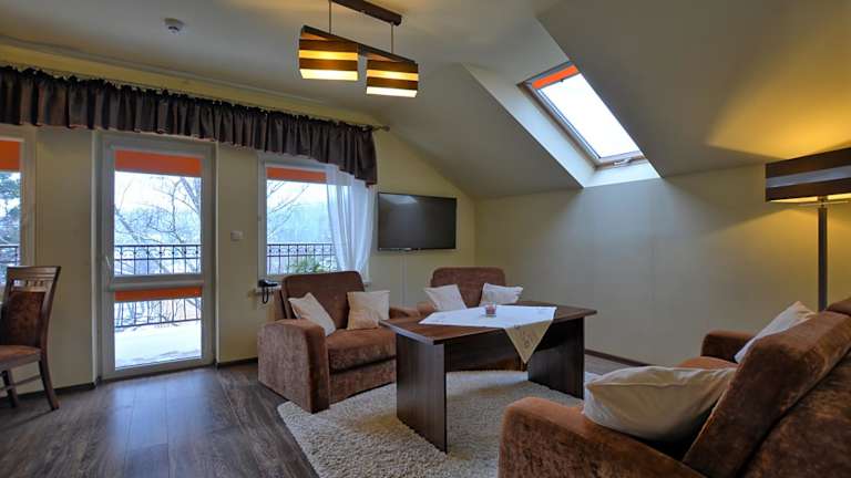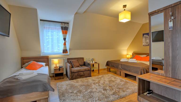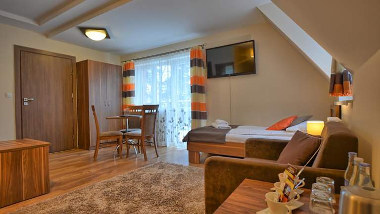 Die Zimmer im Pensjonat Szajna Spa sind bequem und funktional ausgestattet. Jedes Zimmer verfügt über einen Kleiderschrank, einen Flachbild-TV, ein eigenes Badezimmer sowie Bettwäsche und Handtücher. Einige Zimmer haben zusätzlich einen Balkon oder bieten Stadtblick. Ein Wasserkocher ist ebenfalls vorhanden.