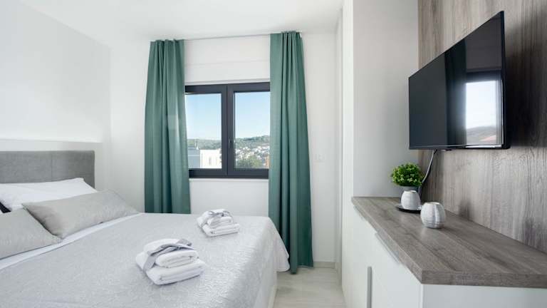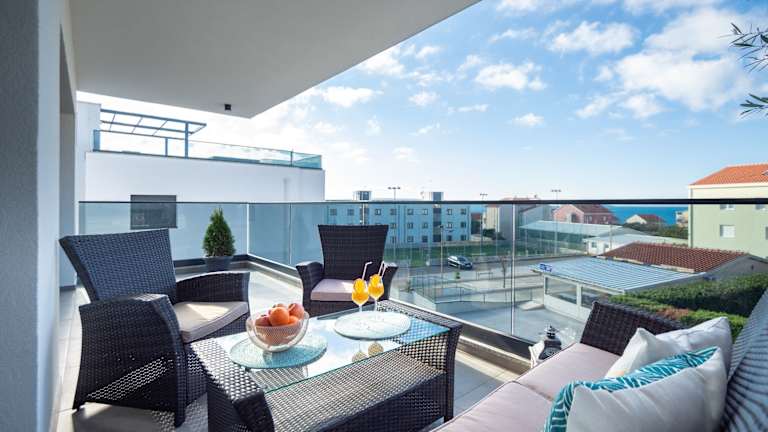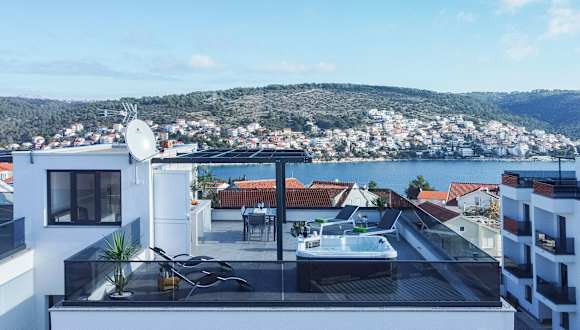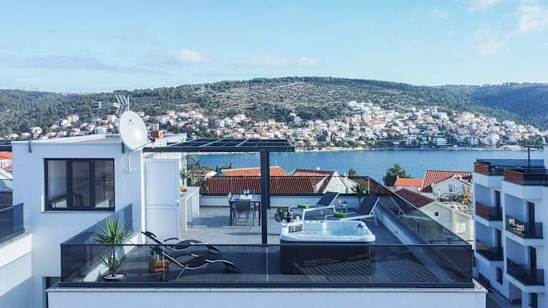 Penthouse Adriatic Blue ist eine Unterkunft, die durch einen saisonalen Aussenpool, einen Garten und eine Terrasse besticht. Hier stehen den Gästen Annehmlichkeiten wie kostenloses WLAN und ein kostenloser Privatparkplatz zur Verfügung. Die stilvolle Ferienwohnung ist klimatisiert und bietet eine heimelige Atmosphäre für entspannte Ferien.