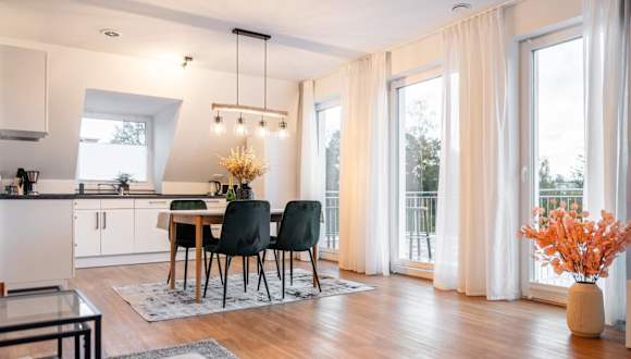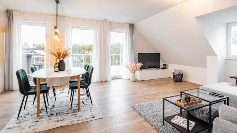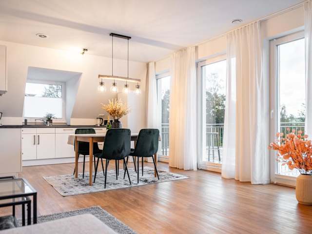 Das Penthouse am Marschweg bietet eine gemütliche Ferienwohnung mit Gartenblick. Die Unterkunft ist modern eingerichtet und verfügt über einen eigenen Balkon, einen kostenlosen privaten Parkplatz sowie kostenfreies Wifi.