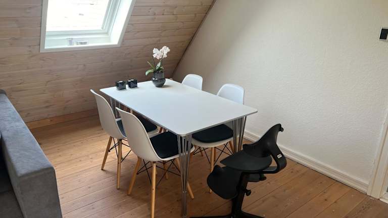 Das Penthouse apartment in Esbjerg townhouse bietet eine gemütliche Übernachtungsmöglichkeit in einer charmanten Ferienwohnung, die in einem Gebäude aus dem Jahr 1937 untergebracht ist. Die Unterkunft ist von einem Garten umgeben und stellt eine Gemeinschaftsküche sowie eine Gemeinschaftslounge zur Verfügung.