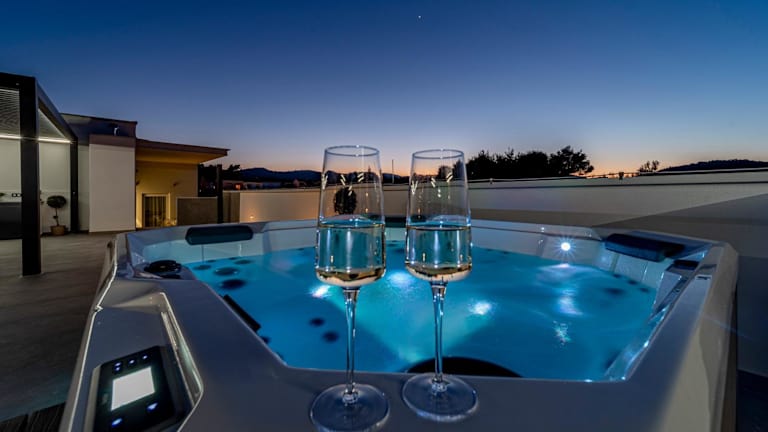 Die Ferienwohnung verfügt über 3 Schlafzimmer und ein Wohnzimmer. Die voll ausgestattete Küche umfasst einen Kühlschrank und eine Kaffeemaschine. Es gibt 2 Badezimmer, die mit einer Badewanne oder Dusche sowie einem Whirlpool ausgestattet sind. Handtücher und Bettwäsche werden bereitgestellt.