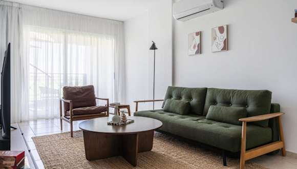 Die Ferienwohnung verfügt über 2 Schlafzimmer, ein Wohnzimmer, eine voll ausgestattete Küche sowie eine Veranda oder einen Patio. Zur Ausstattung gehören zudem ein TV, Klimaanlage und Heizung.