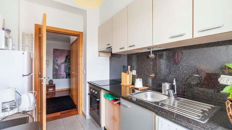 Die Ferienwohnung besteht aus einem Schlafzimmer und einem Wohnzimmer. Die voll ausgestattete Küche ist mit einem Kühlschrank und einer Kaffeemaschine ausgestattet. Das Badezimmer umfasst ein Bidet und eine Dusche. Handtücher und Bettwäsche werden bereitgestellt, und die Räume sind klimatisiert.