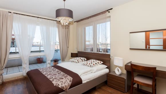 Das Jantar Apartamenty ist eine geräumige und modern eingerichtete Unterkunft mit Annehmlichkeiten wie einem Balkon und einem eigenen Bad. Die Unterkünfte sind mit einem Smart-TV, kostenlosem Wifi und einer voll ausgestatteten Küchenzeile ausgestattet. Einige Apartments verfügen über zusätzliche Bequemlichkeiten wie einen Geschirrspüler und eine Waschmaschine. Das gesamte Wohnambiente ist für einen angenehmen Aufenthalt konzipiert.