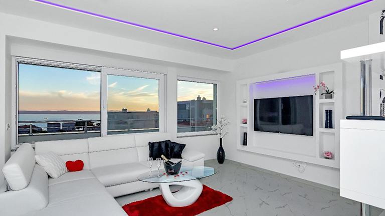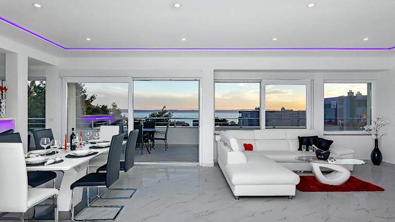 Penthouse Lush Makarska bietet eine moderne Ferienwohnung mit Stadtblick und einem Balkon. Sie ist klimatisiert und umfasst 3 Schlafzimmer sowie ein Wohnzimmer. Die Unterkunft überzeugt mit einer voll ausgestatteten Küche, einem Kühlschrank und einer Kaffeemaschine. Zudem stehen 3 Badezimmer mit einer Dusche und einem Haartrockner zur Verfügung. Die Terrasse lädt zum Verweilen ein und es gibt Möglichkeiten für Grillen.