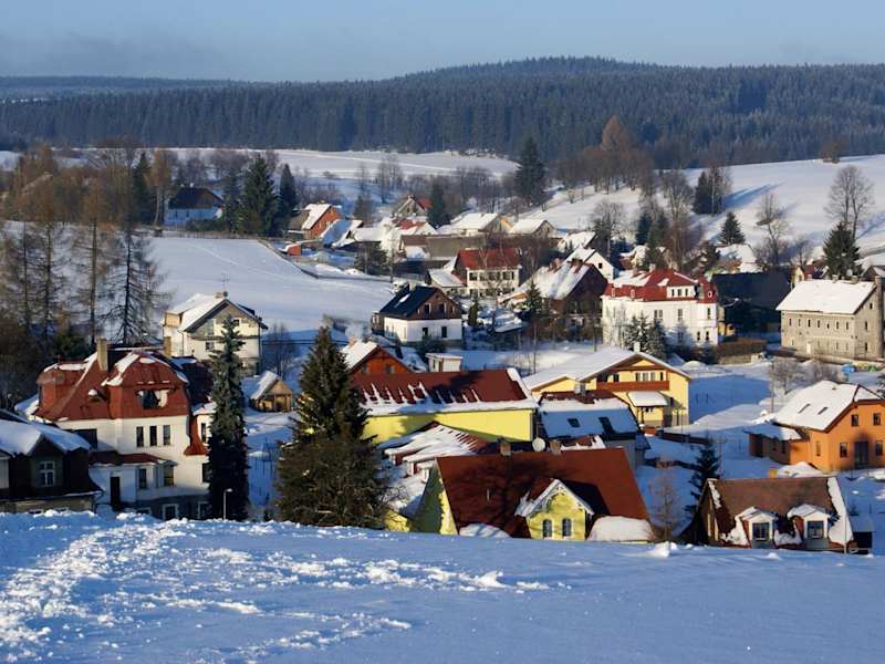 Die Penzion "Apartmány U Semušky" befindet sich in Pernink, in malerischer Umgebung mit Blick auf den Fluss. Die Unterkunft bietet direkten Zugang zur Skipiste und ist 17 km von Fichtelberg und 23 km von der Marktkolonnade entfernt. Der nächstgelegene Flughafen, Karlovy Vary, ist 28 km entfernt.