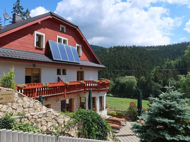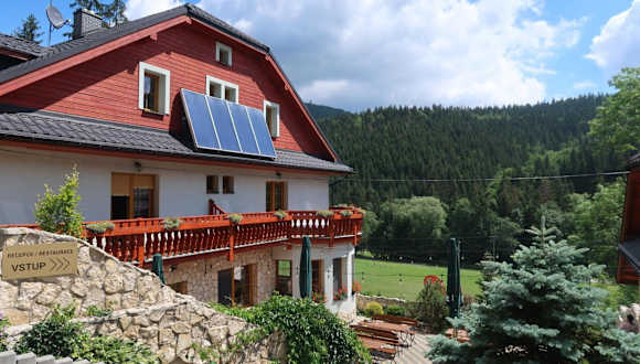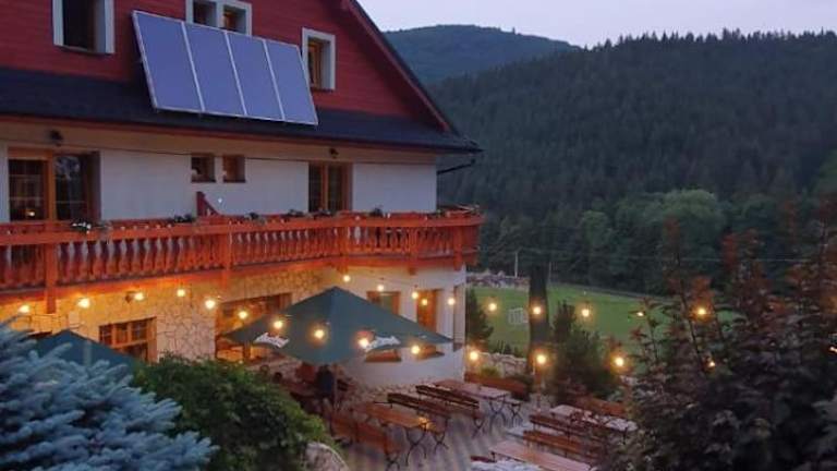 Die Penzion Bawaria bietet Übernachtungsmöglichkeiten in einer einladenden Umgebung mit einem Garten, einer Terrasse und einem gemütlichen Gemeinschaftsbereich. Zur Ausstattung gehören ein kostenloser Privatparkplatz sowie ein Skiraum und eine Bar.