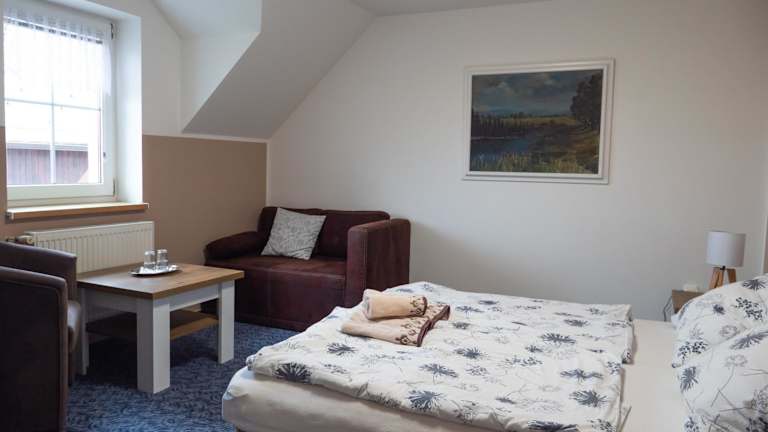 Die Zimmer der PENZION BENEŠOV u BROUMOVA sind mit einem Kleiderschrank, einem Flachbild-TV sowie einem eigenen Badezimmer ausgestattet. Alle Wohneinheiten enthalten Bettwäsche, Handtücher und einen Wasserkocher. Einige Zimmer verfügen über einen Balkon. Zusätzlich sind Kühlschränke in den Zimmern verfügbar.