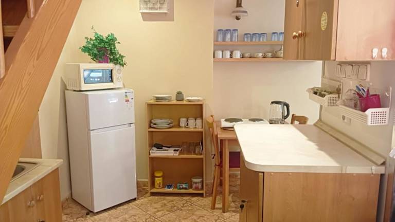 Die Gästezimmer sind ausgestattet mit einem TV, einer Küchenzeile sowie Bettwäsche und Handtüchern.