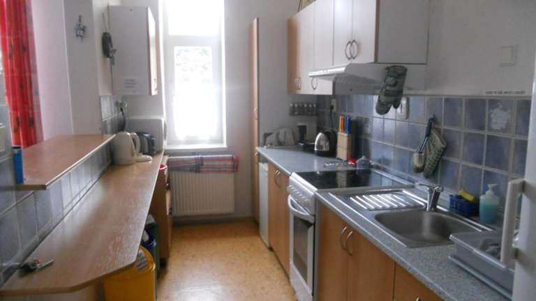 Die Unterkunft verfügt über eine Gemeinschaftsküche, in der die Gäste ihre Mahlzeiten zubereiten können. Ein Café ist vor Ort verfügbar. Weitere gastronomische Angebote sind nicht vorhanden.