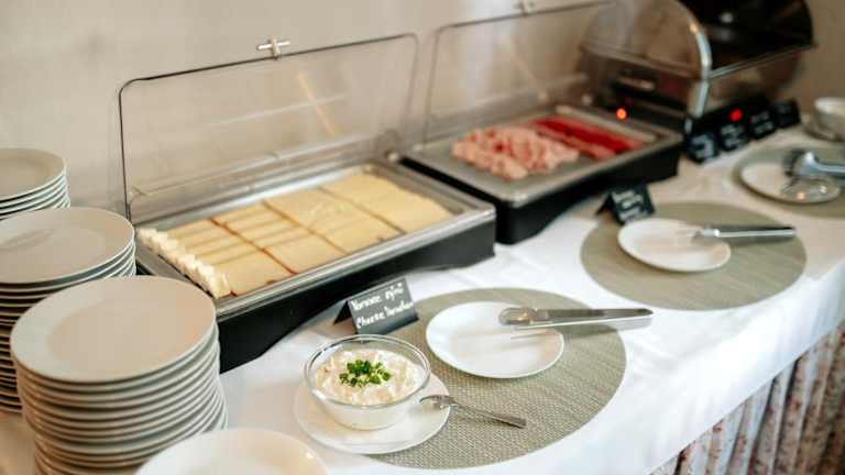 Ein Frühstück wird in Form eines Buffets angeboten.