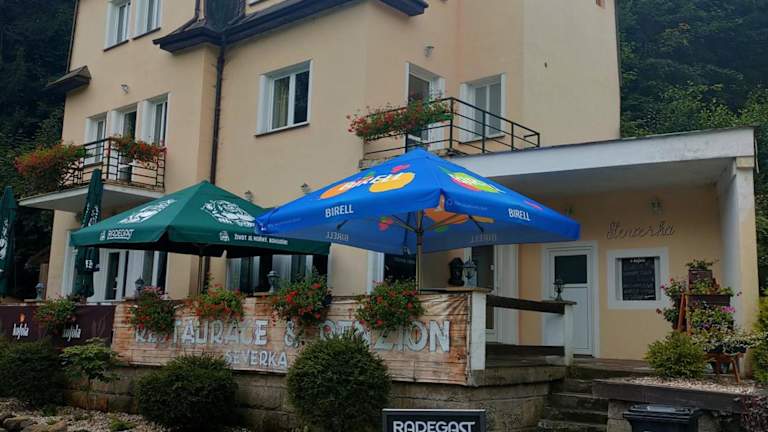 Die Penzion Severka bietet Übernachtungsmöglichkeiten mit einer Gemeinschaftslounge, einem kostenlosen Privatparkplatz und einer Terrasse. Es gibt eine Gemeinschaftsküche und die Organisation von Touren für die Gäste. Die Unterkunft verfügt über einen Abstellraum für Skier und bietet eine familienfreundliche Atmosphäre.