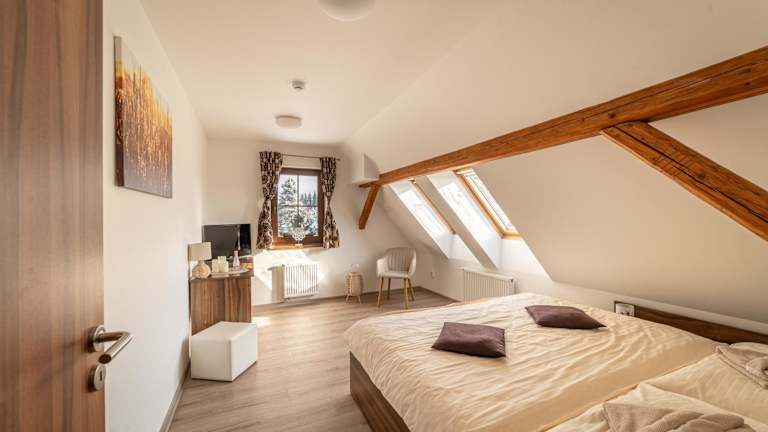 Die Penzion Studánka ist eine einladende Unterkunft, die mit einem Aussenpool, einem Garten und einer Gemeinschaftslounge punktet. Die gemütliche Atmosphäre wird durch eine Terrasse ergänzt, die Gästen einen Raum zum Entspannen bietet. Zudem verfügt die Pension über eine Gemeinschaftsküche und einen Kinderspielplatz, um Familien einen angenehmen Aufenthalt zu ermöglichen. Das Angebot an Annehmlichkeiten umfasst auch eine Sauna, einen Kinderclub und kostenloses Wifi in der gesamten Unterkunft.